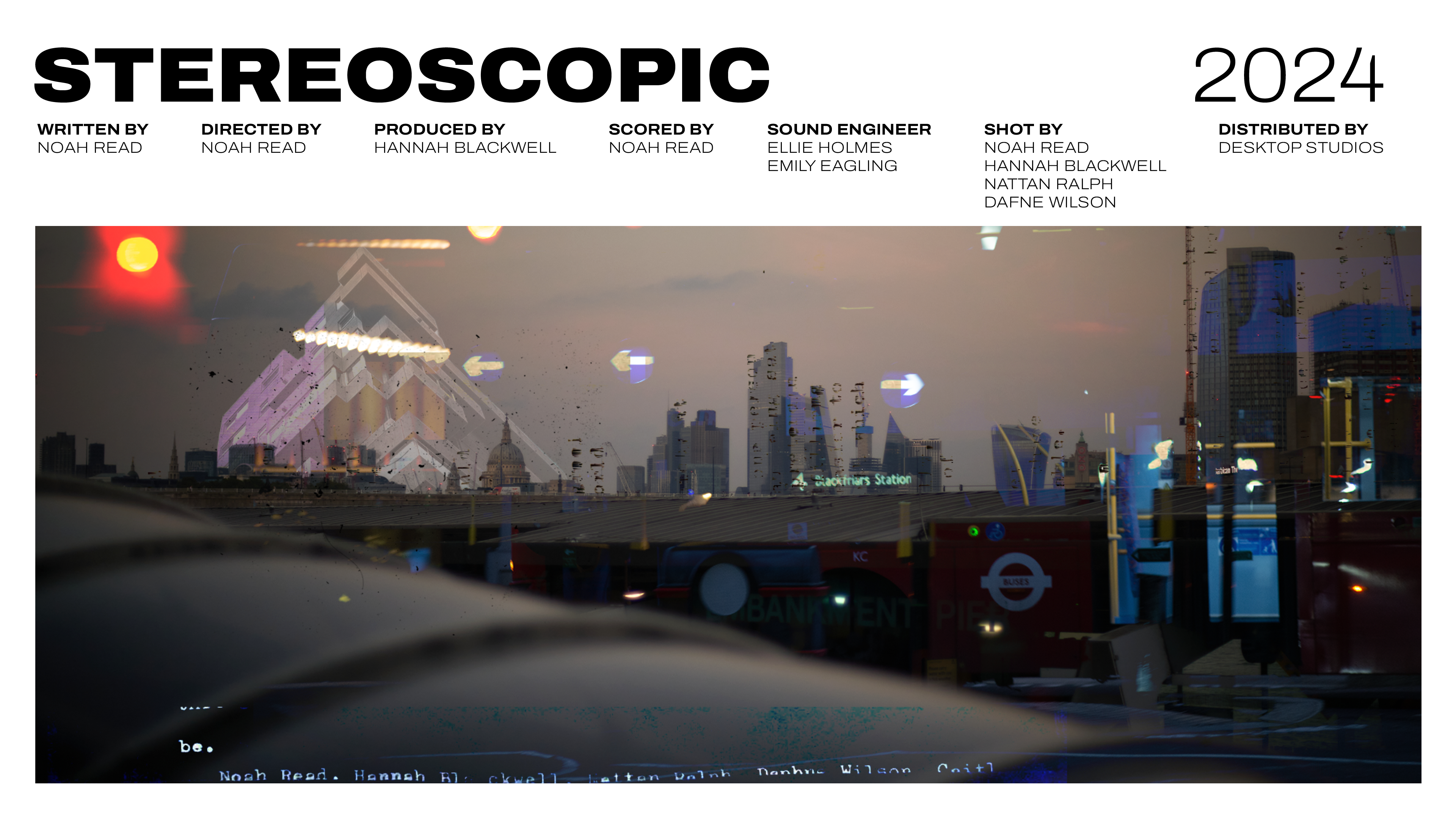 Desktop is a collaborative film and production studio based in London, which I founded with Hannah Blackwell between 2023 and '24. Hannah and I have worked together on a number of projects, including the first Desktop production, Stereoscopic. Desktop encompasses all manner of projects, live installations, and solo projects from both myself and Hannah.